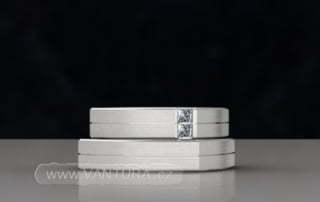 Zásnubní prsten s diamantem princess č. 2007 je možné doplnit snubními prsteny, náušnicemi a náhrdelníkem s diamanty ve stejném designu. Všechny jednotlivé kusy této soupravy zachovávají strohý, jasný a elegantní tvar, které jsou ve vzájemném dokonalém souladu.