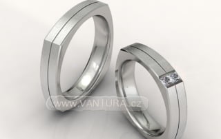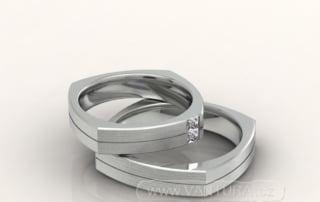 Zdánlivě jednoduchý tvar zásnubního prstenu, vytvořený důmyslným propojením kruhů a čtverců, přivádí veškerou pozornost k diamantu, zasazenému v jeho středu. Rovné a oblé linie, zkosené i zaoblené hrany, lesklé a matné plochy se dynamicky střídají a vzájemně doplňují v dokonalé harmonii.