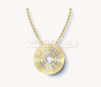 Střízlivě, avšak důmyslně tvarovaný přívěšek, je vytvořený kombinací rovných a zaoblených ploch, zkosených hran a lesklých a matných povrchů.
